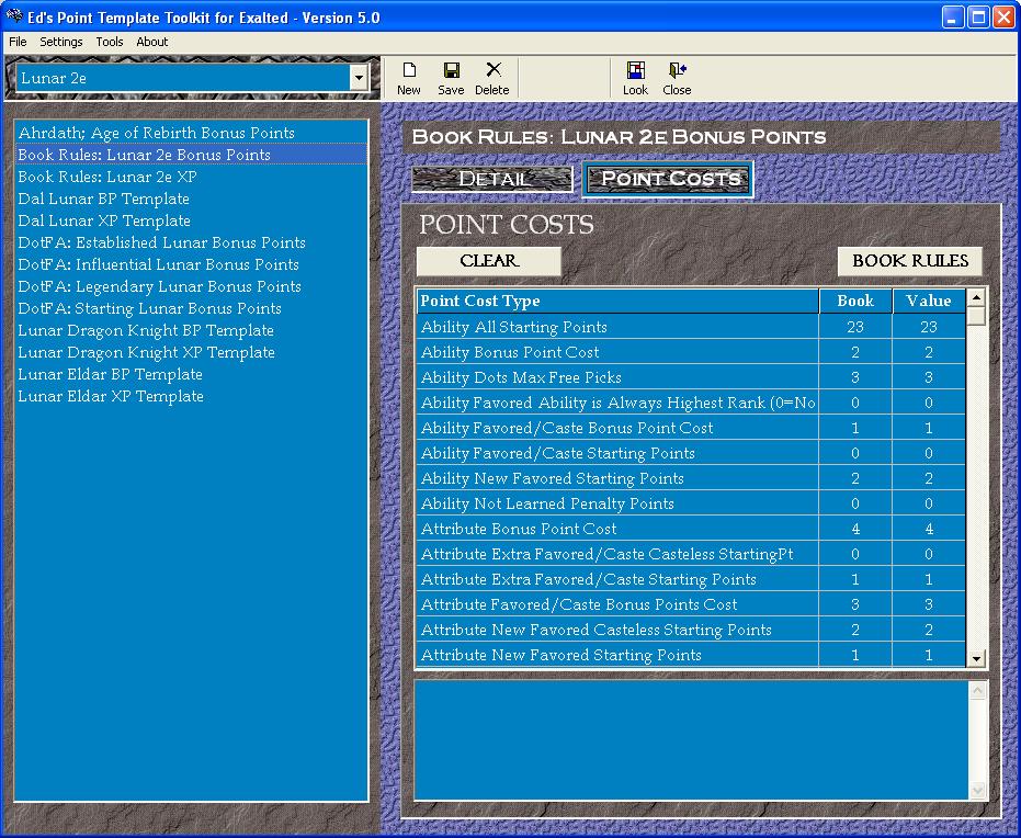 Point Template Costs